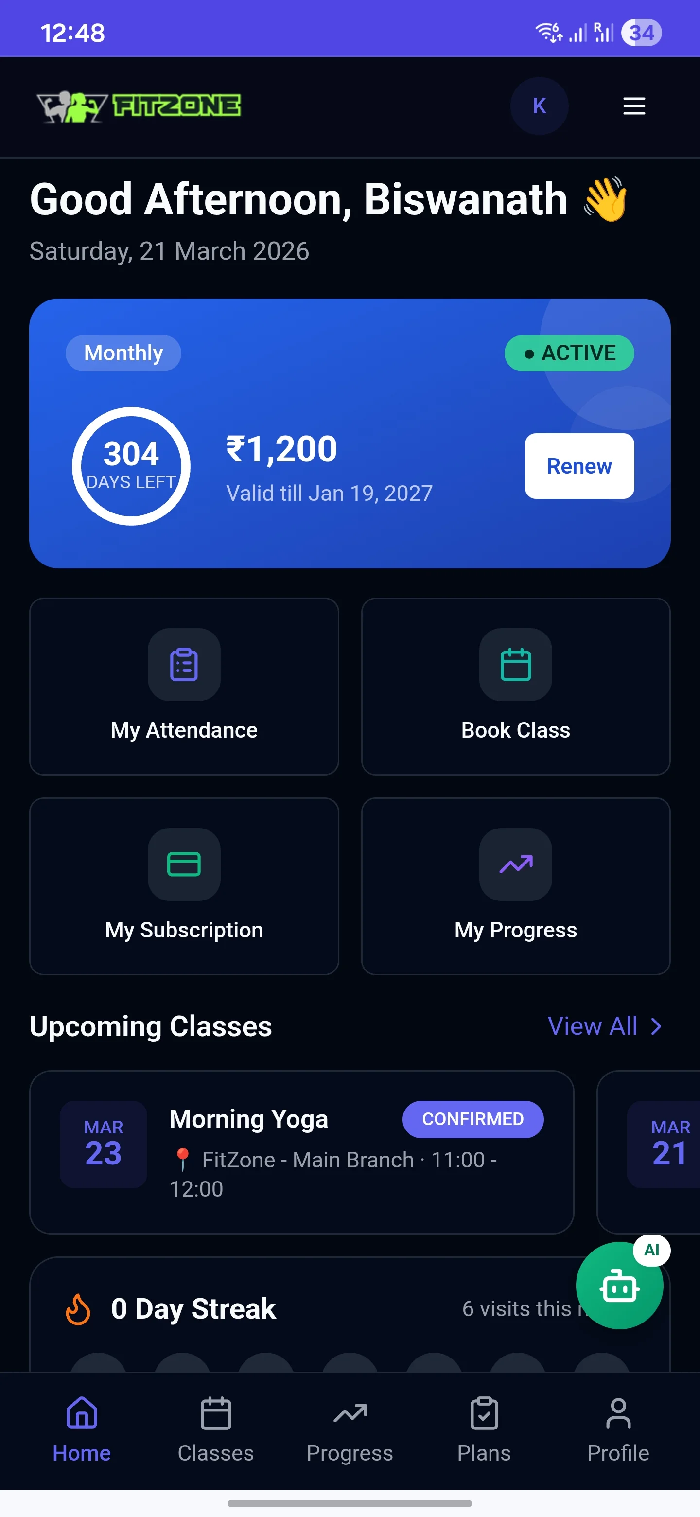 Class reminders, plan updates, expiry alerts.